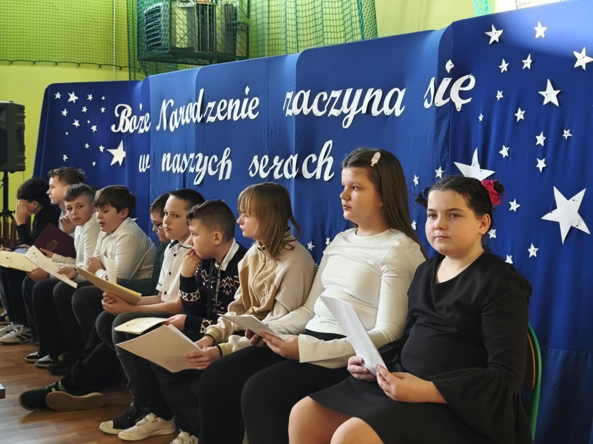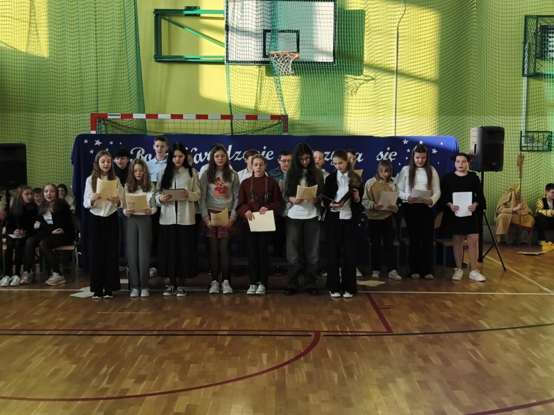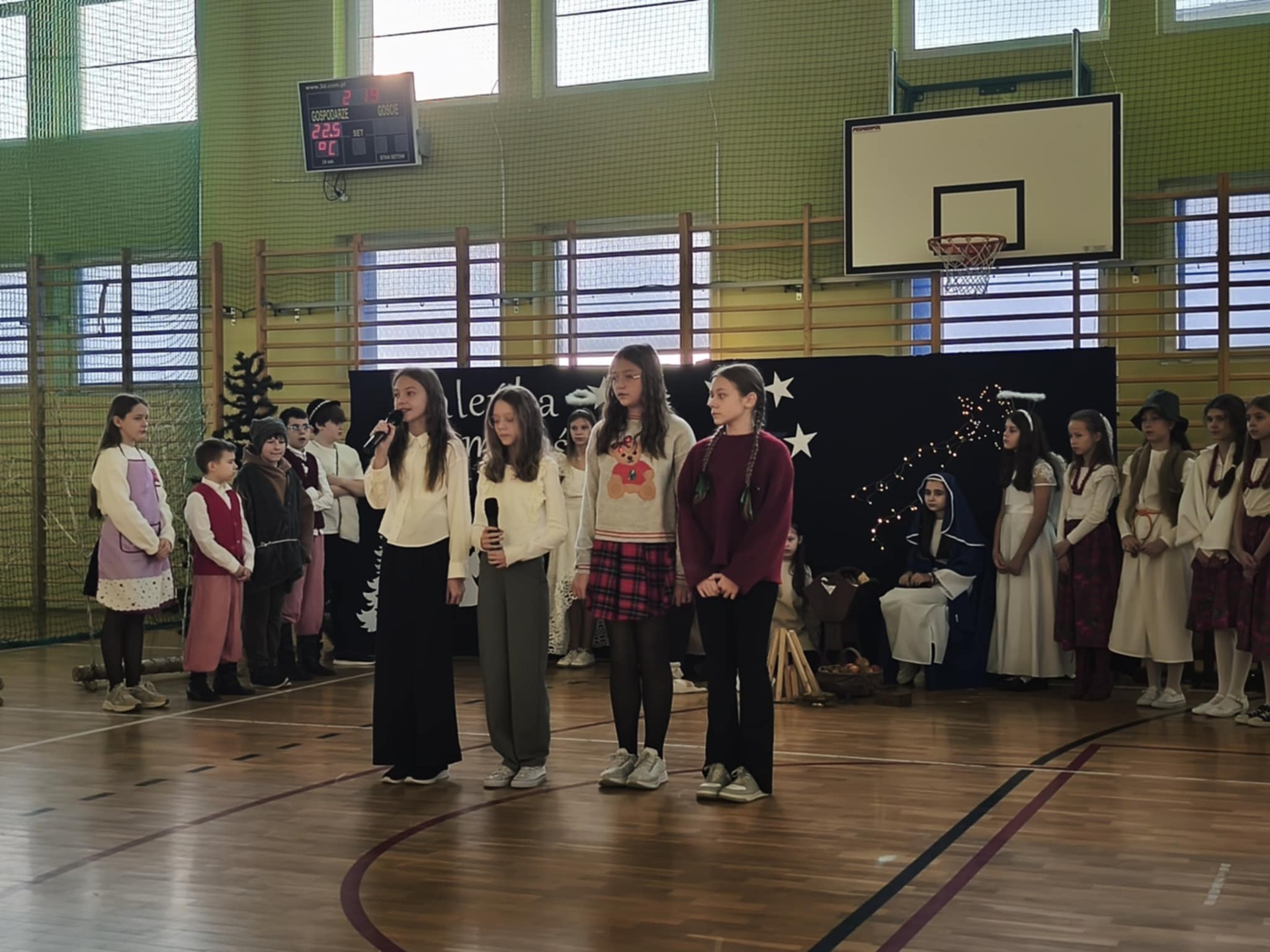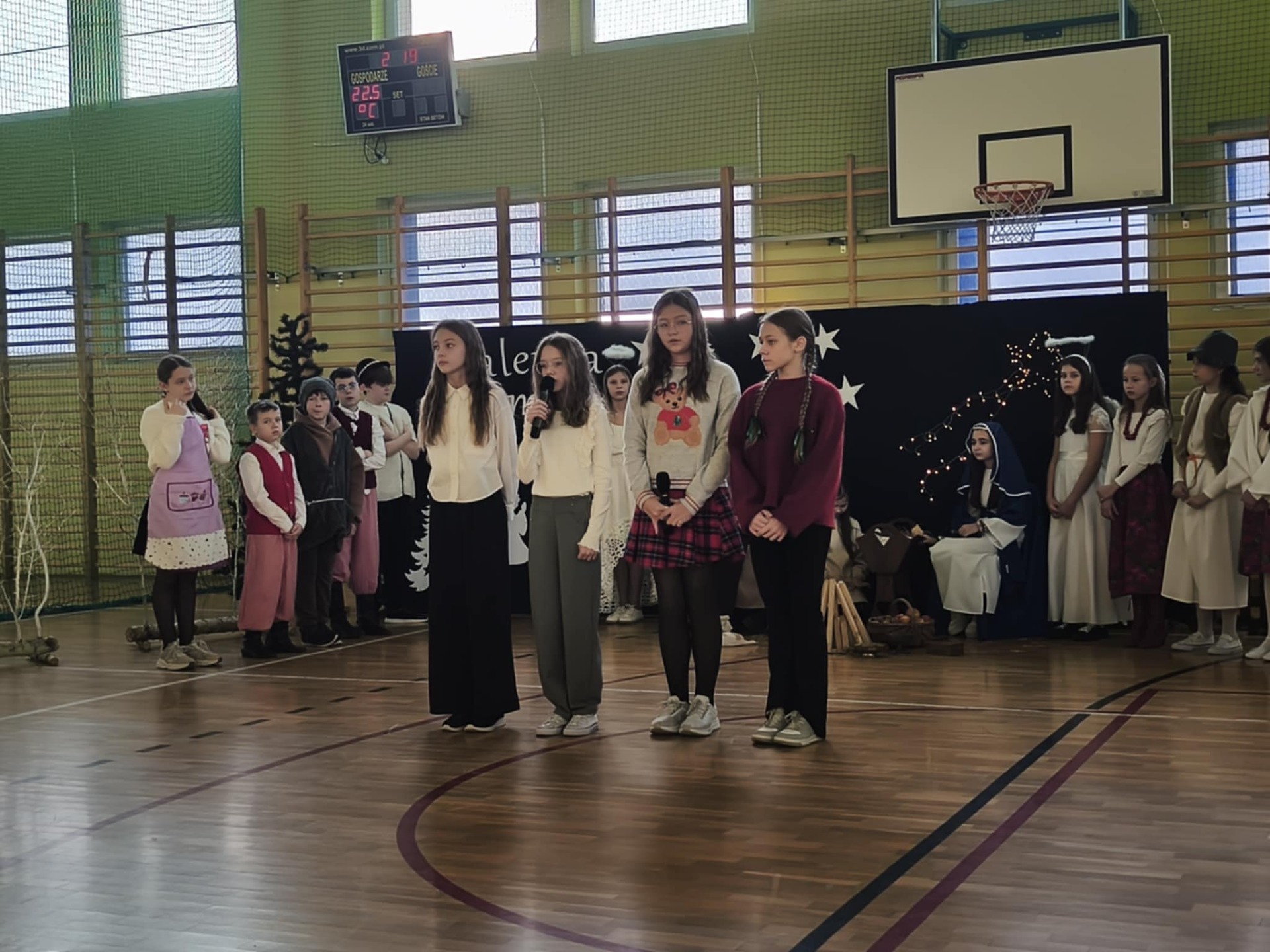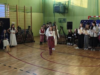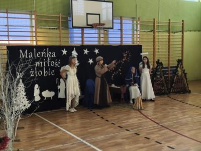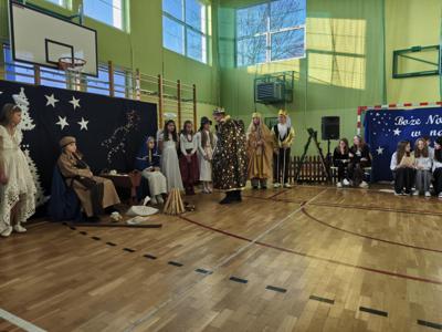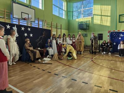 19 grudnia szkoła wypełniła się dźwiękami najpięknieszych kolęd i pastorałek. Pod opieką nauczycieli p. A. Stobieckiej i D. Sitarza uczniowie klas IV, V i VI przygotowałi Jasełka. Dzięki występom dzieci przypomnieliśmy sobie, że w Świętach najważniejsza jest wzajemna życzliwość.