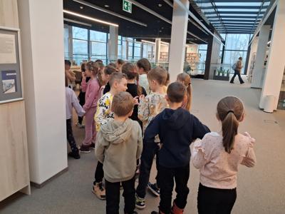 4 grudnia 2025 r. uczniowie oddziału przedszkolnego oraz klasy pierwszej pod opieką wychowawców oraz pani bibliotekarki wybrali się do Mediateki w Piotrkowie Trybunalskim, by wziąć udział w lekcjach bibliotecznych. Pierwszoklasiści podróżowali ze skarpetkami inspirując się książką Justyny Bednarek "Niesamowite przygody dziesięciu skarpetek". Najmłodsza grupa uczestniczyła w zajęciach "Wśród zwierząt", gdzie główną bohaterką była sypmatyczna Kicia Kocia. Wizyta zakończyła się zwiedzaniem zakamarków Mediateki i zabawą w pokoju malucha. Wycieczka była wspaniałą okazją do rozwijania pasji czytelniczych i integracji międzyklasowej.